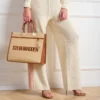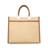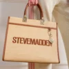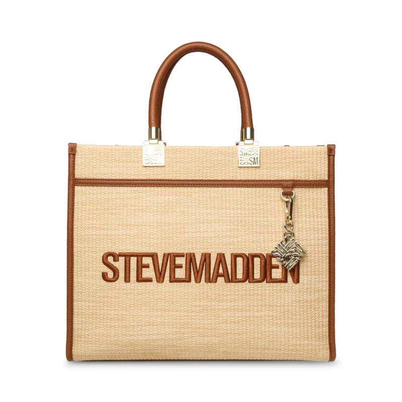 תיק יד גדול לנשים בגוון קש טבעי עם אלמנטים מוזהבים וידיות אחיזה נוחות ורצועת כתף מתכווננת ונשלפת לנשיאה מגוונת מבית סטיב מאדן.