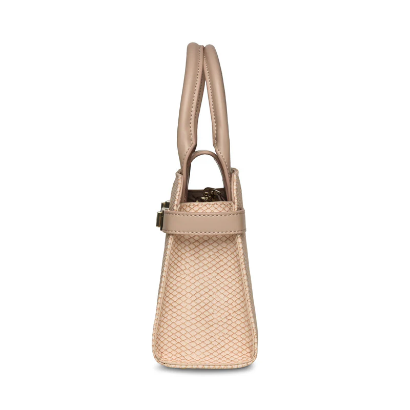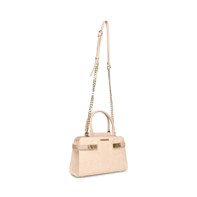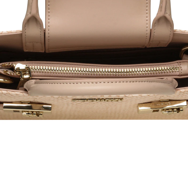 תיק יד אלגנטי מבית Steve Madden בעיצוב קלאסי, עשוי דמוי עור איכותי עם טקסטורה עדינה ואלמנטים מתכתיים בגוון זהב. כולל ידיות נשיאה ורצועת שרשרת לנשיאה על הכתף או בהצלבה. מתאים לשימוש יומיומי ולאירועים.
