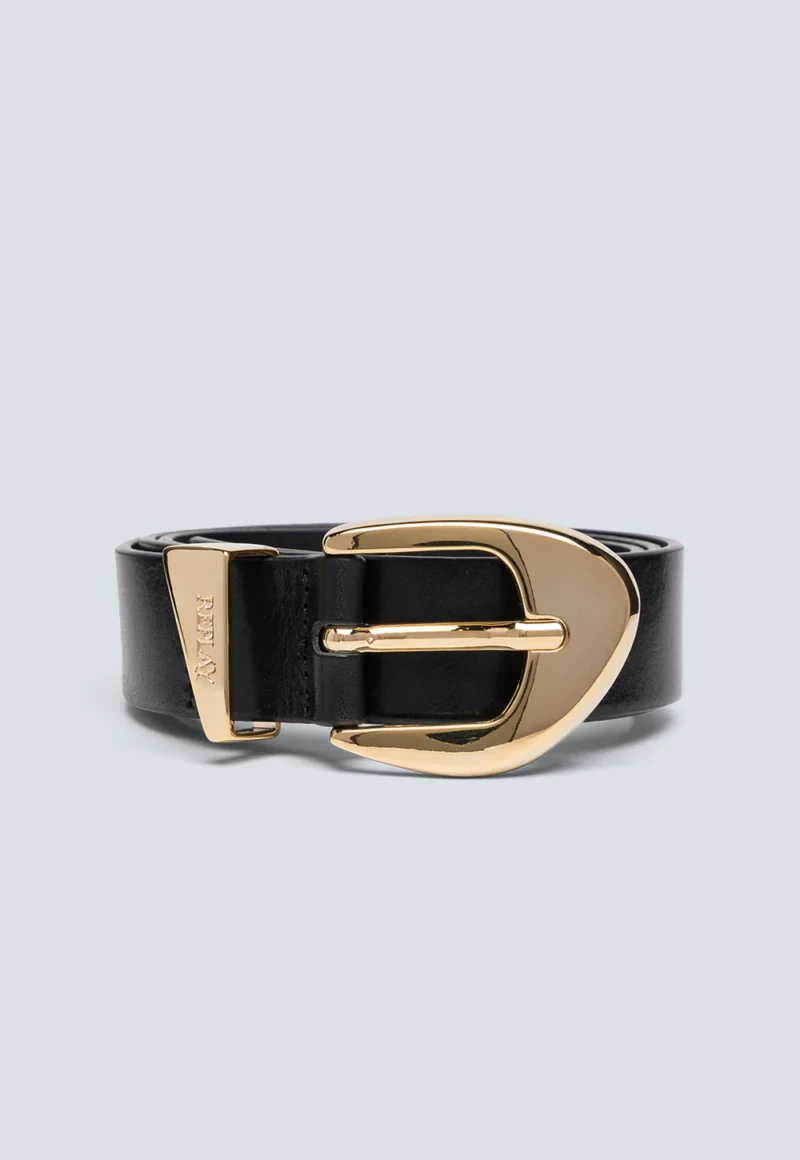 חגורה אלגנטית לנשים בעיצוב יוקרתי עם אבזם מוזהב בעל מראה מודרני ומלוטש. מושלמת להשלמת כל לוק – מג’ינס יומיומי ועד שמלה קלאסית.