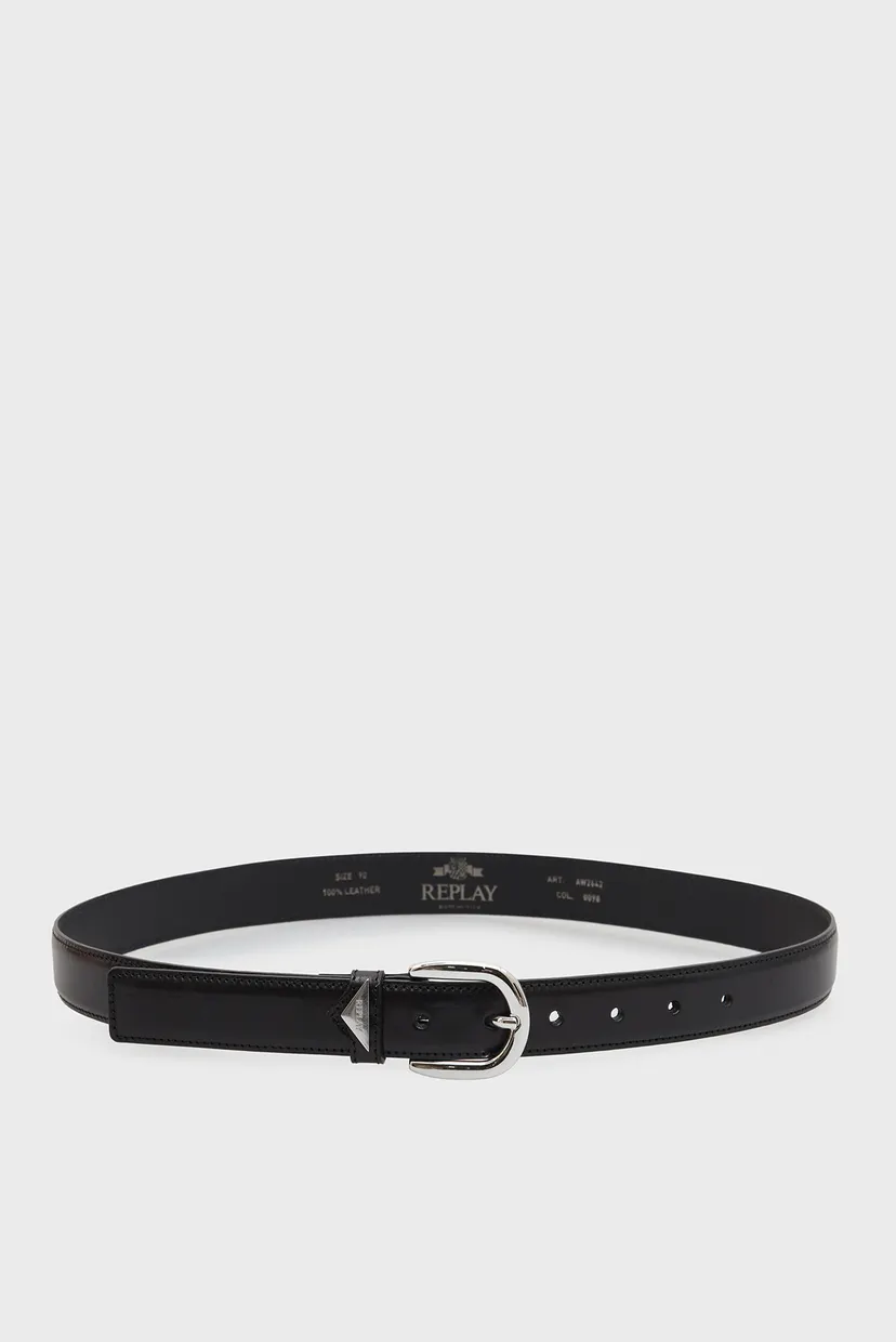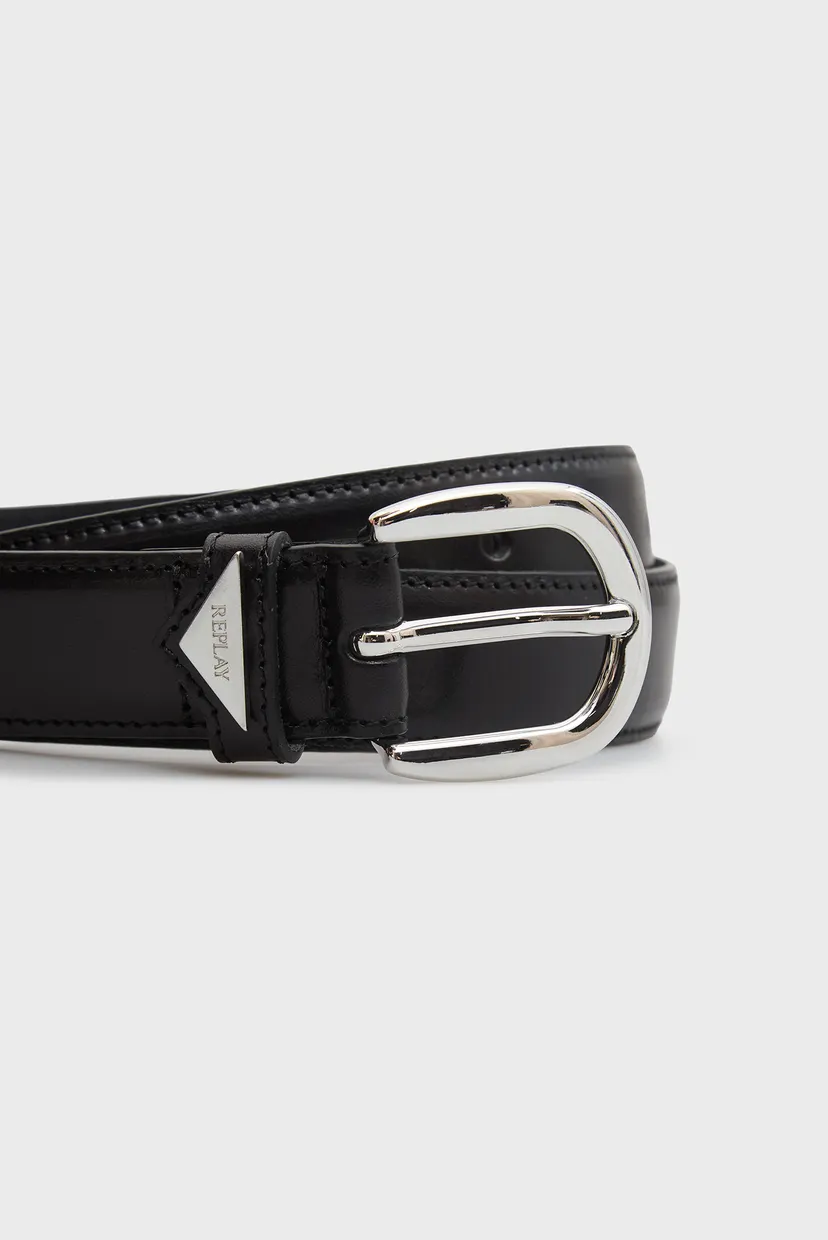 חגורת עור לנשים אלגנטית מבית Replay בעיצוב קלאסי עם אבזם מתכתי בגוון כסף. מתאימה לשימוש יומיומי ומשלימה כל הופעה בסטייל נקי ומוקפד.