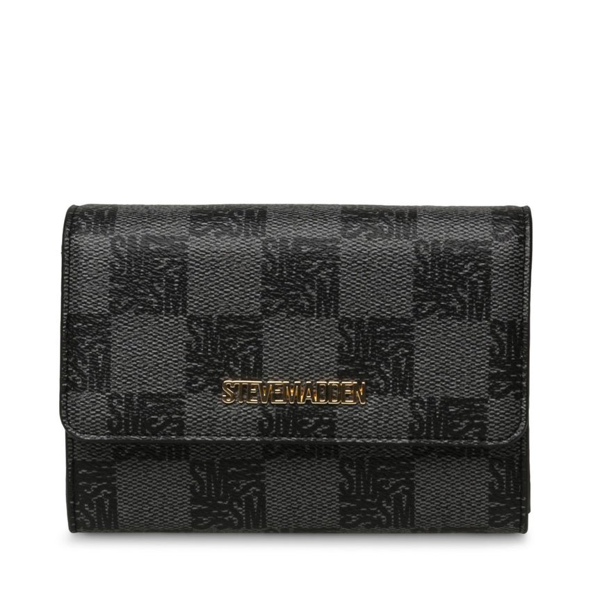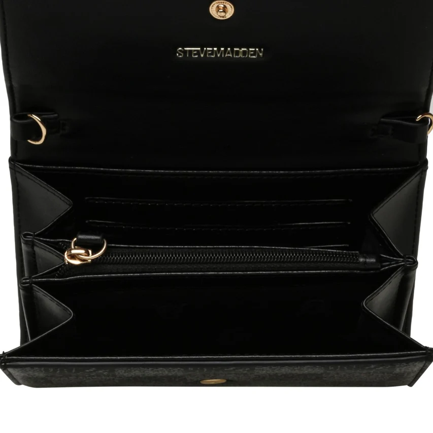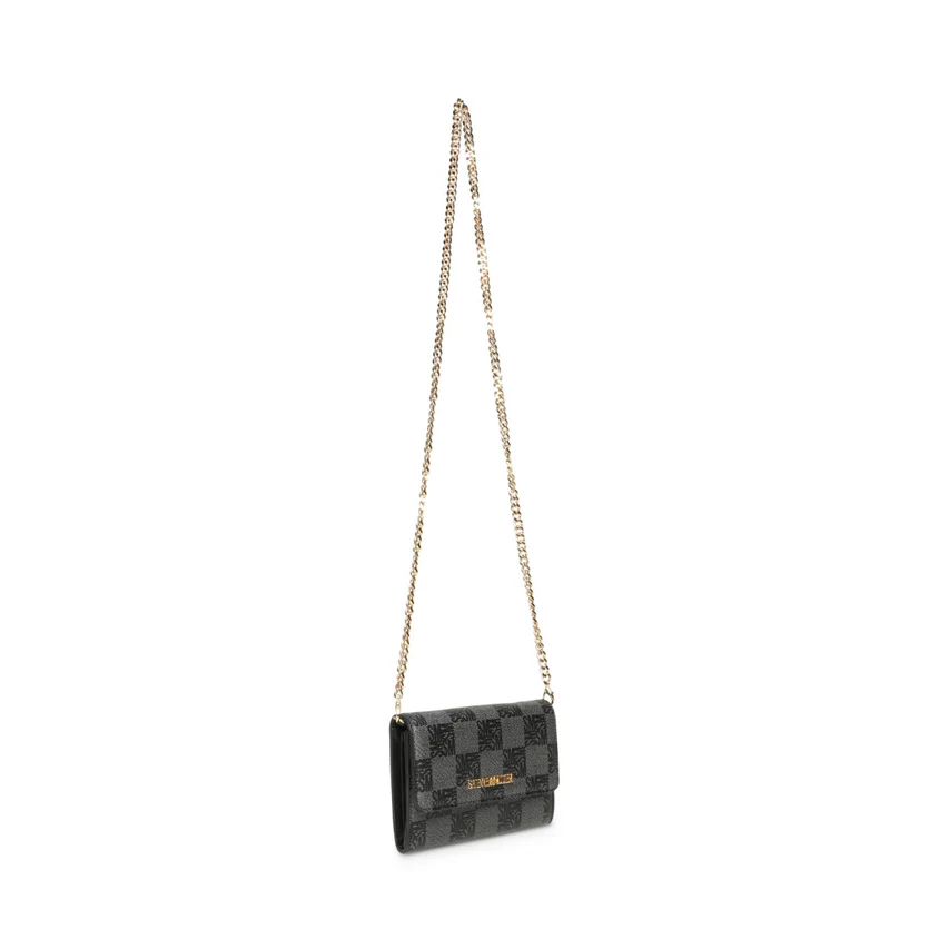 ארנק לנשים בשחור משולב עם הדפס לוגו ALL OVER ורצועת שרשרת מוזהבת לנשיאה לצד הגוף מבית סטיב מאדן