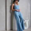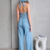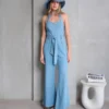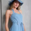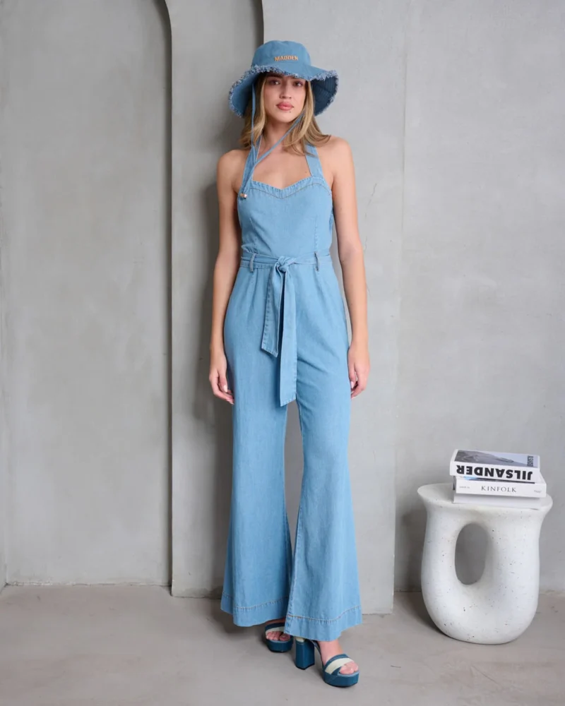 אוברול מקסי לנשים בג׳ינס עם חגורת מותן וכתפיות קשירה מבית סטיב מאדן