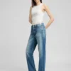 ג'ינס מבית Replay מותן גבוהה, עשוי דנים אינדיגו מכותנה ממוחזרת למראה קלאסי וידידותי לסביבה.