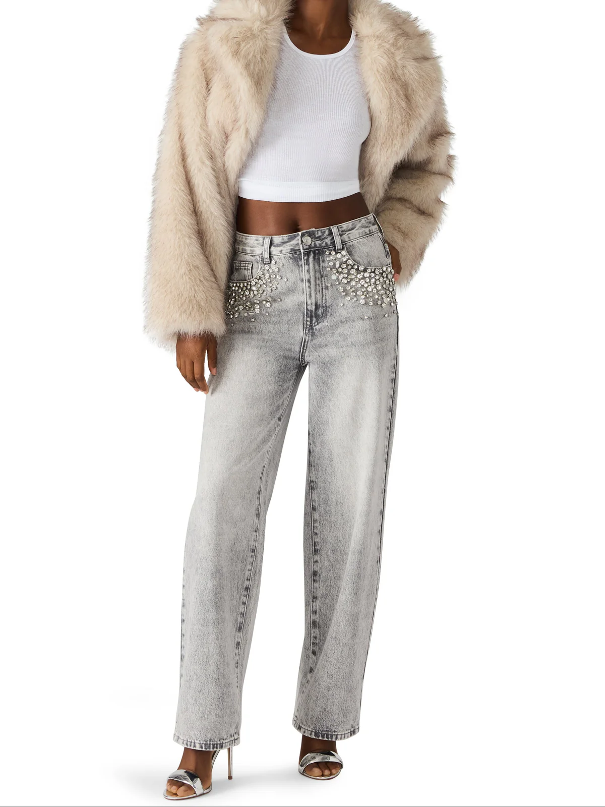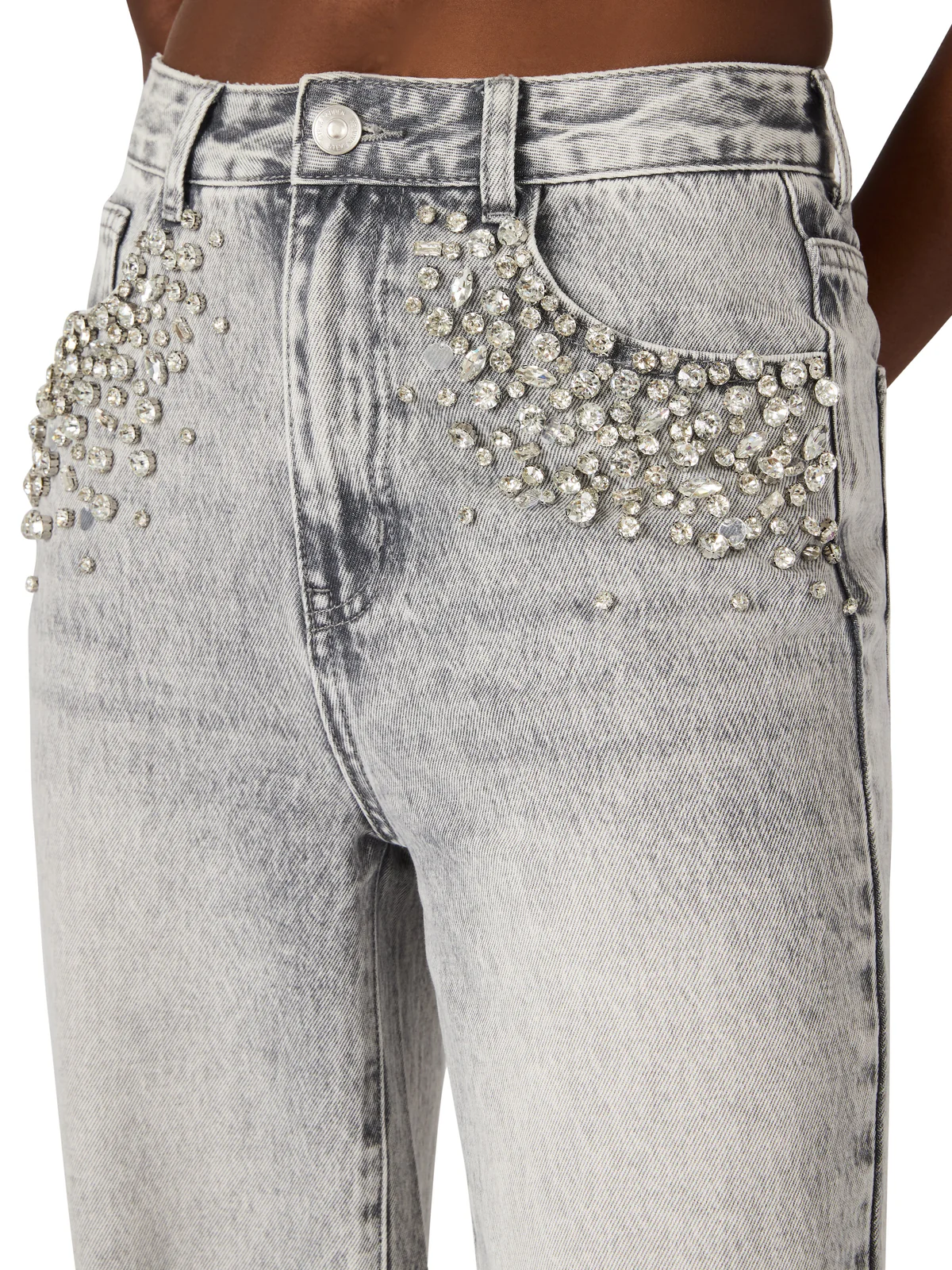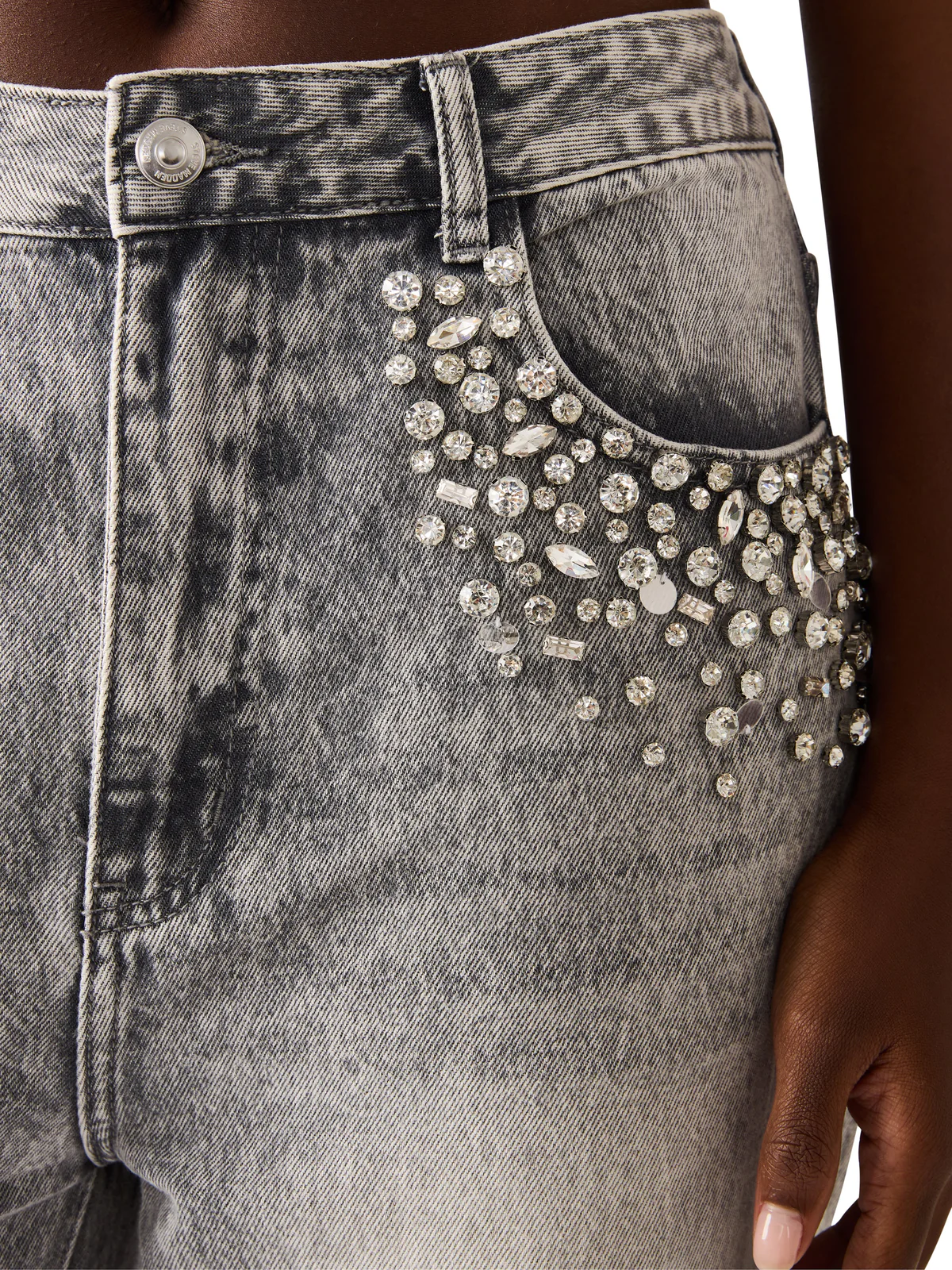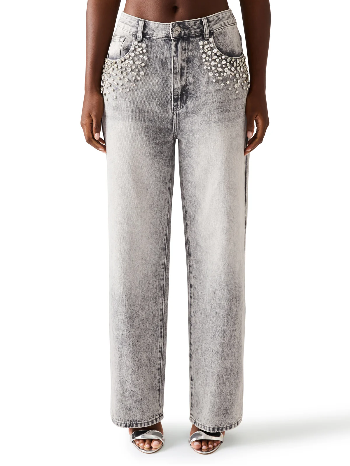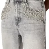מכנסי ג'ינס לנשים באפור ווש עם שיבוץ אבנים מבית סטיב מאדן