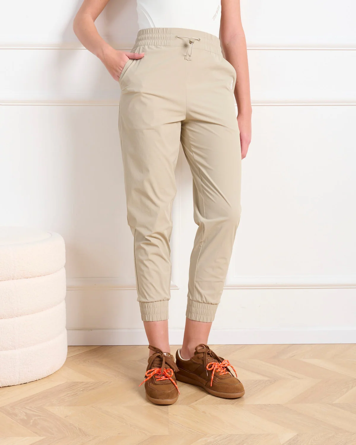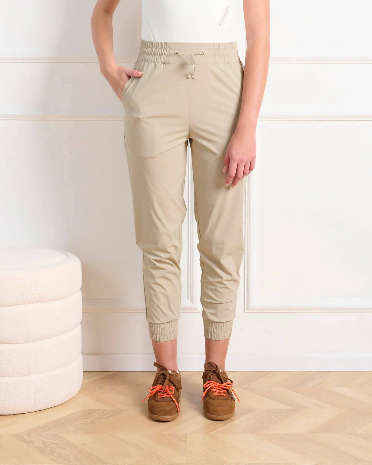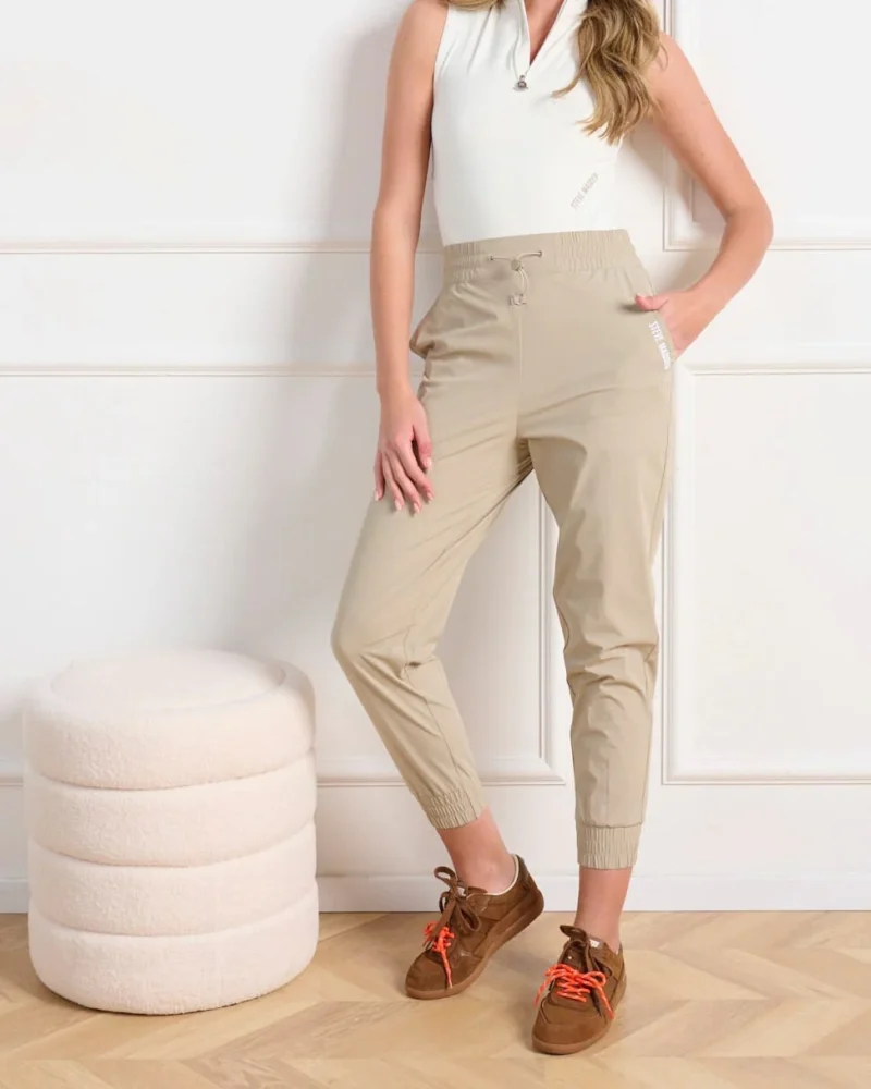 מכנסיים ספורטיביים לנשים עם רצועות גומי במותן ובמכפלת מבית סטיב מאדן