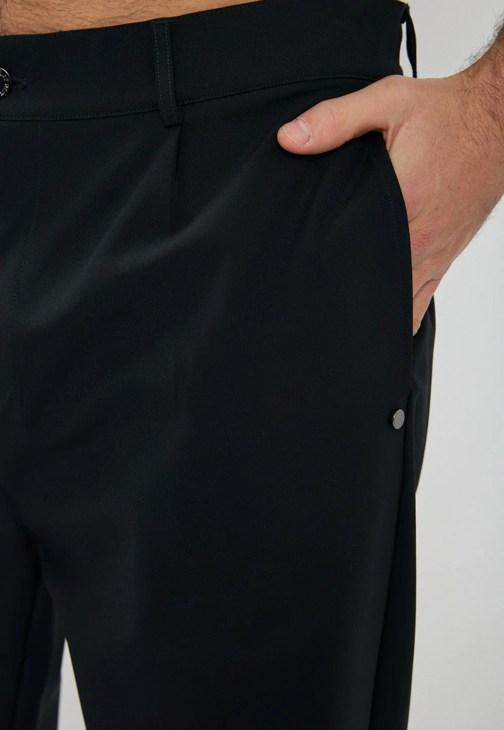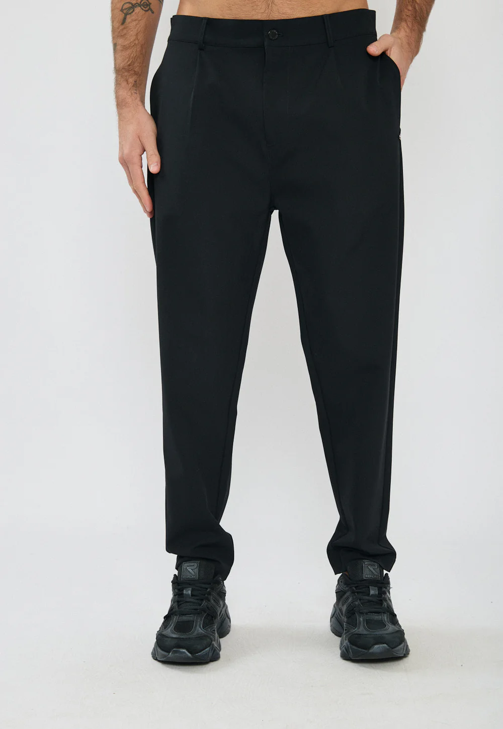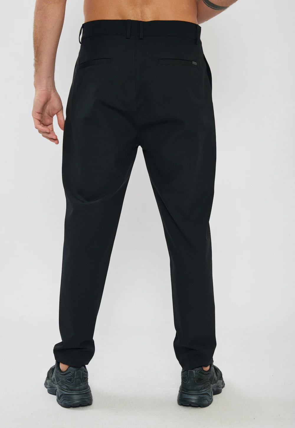 מכנסיים ארוכים לגברים בצבע שחור בגזרה אלגנטית ומדויקת, בעיצוב נקי שמשלב בין נוחות לסטייל מחויט.