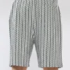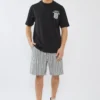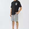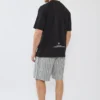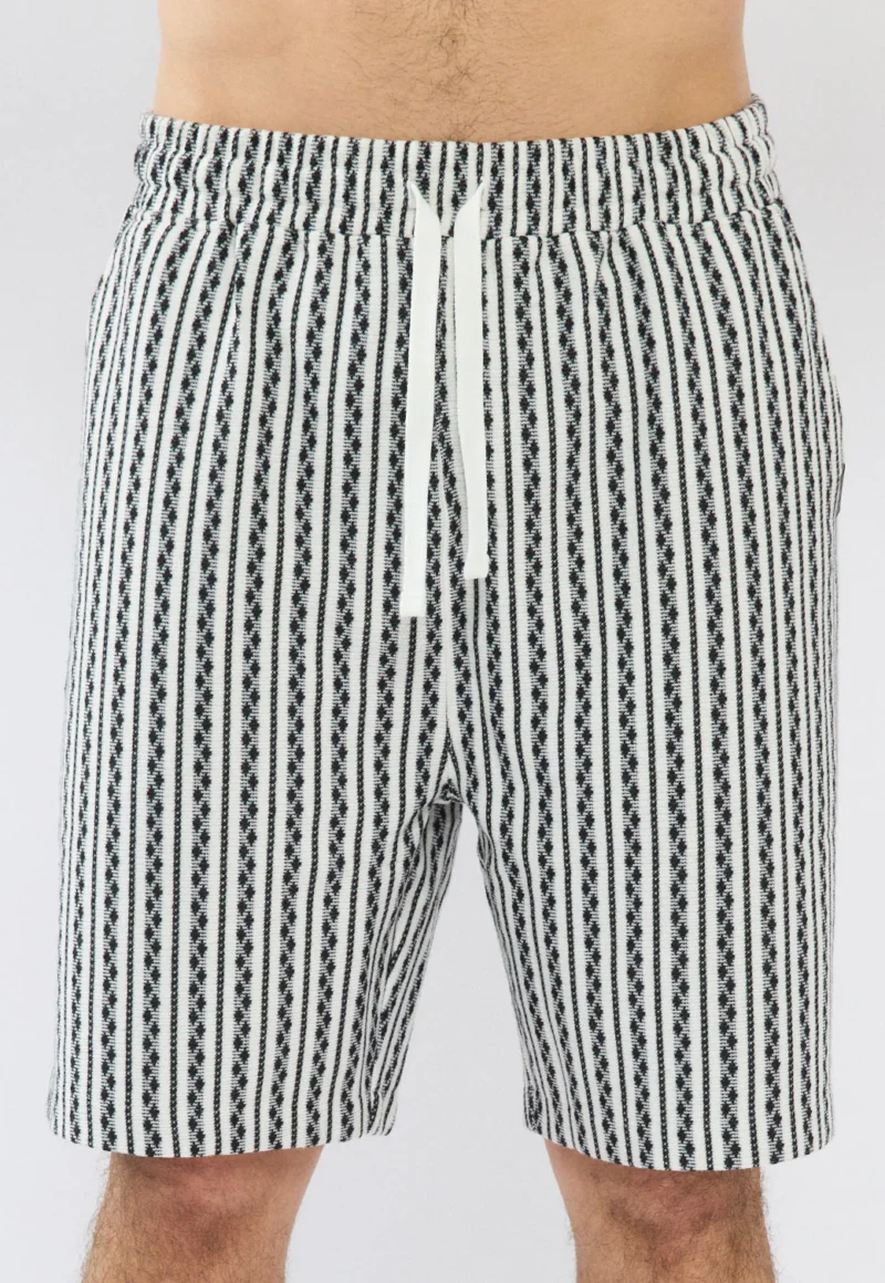 מכנסי גברי קצרים בגזרה נוחה, פרקטית ורגועה. כוללים שרוך גומי במותן להתאמה מושלמת ונוחות מרבית. פסים שחורים. מושלם לשילוב עם סווטשירט, חולצת טי או חולצה למראה אופנתי ומודרני.