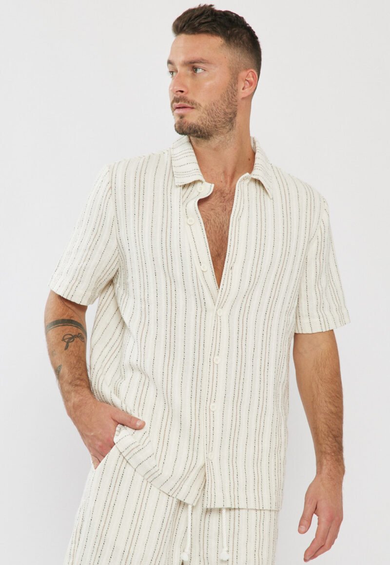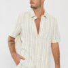 חולצה מכופתרת לגברים בצבע בז’ בעיצוב אלגנטי ומודרני.