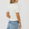חולצת פולו לנשים בגזרה מחמיאה וצמודה בצבע לבן, עשויה בד כותנה נעים למגע ונוח ללבישה יומיומית. כוללת צווארון קלאסי עם סגירת כפתורים קדמית ולוגו קטן בחזית להשלמת המראה. משתלבת בצורה מושלמת עם ג׳ינס או מכנס מחויט ליצירת לוק אלגנטי וקז׳ואלי נקי.