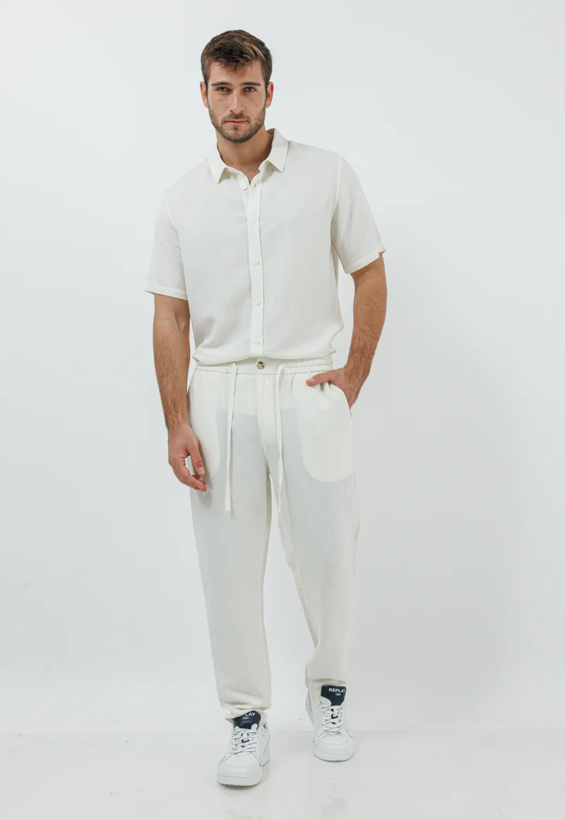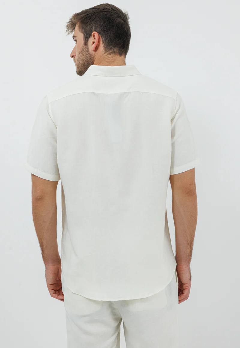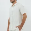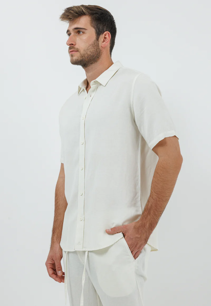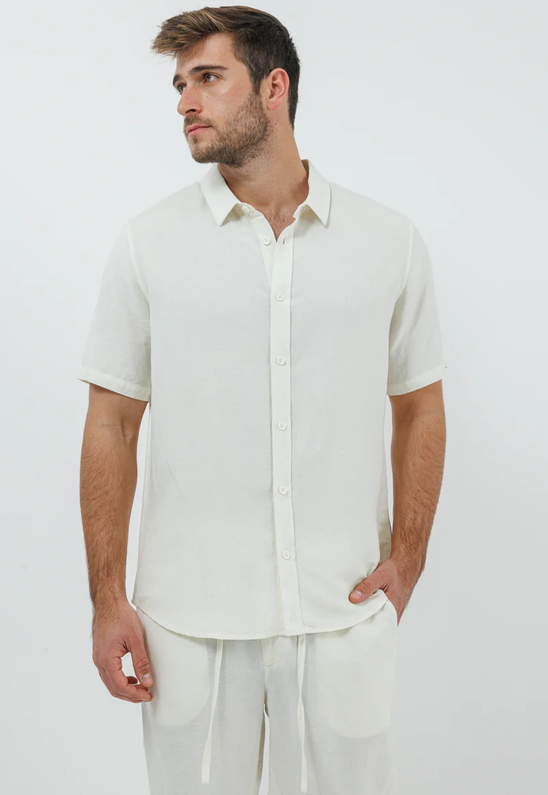 חולצה קצרה לגברים מבד פשתן קליל, בגוון קרם טבעי שמעניק מראה רענן ואלגנטי. גזרה נקייה, כפתורים קדמיים וצווארון פתוח – השילוב המושלם בין נוחות לבין סגנון מדויק לקיץ. מתאימה לשילוב עם מכנס פשתן תואם או ג’ינס בהיר לווייב חופשי עם נוכחות.