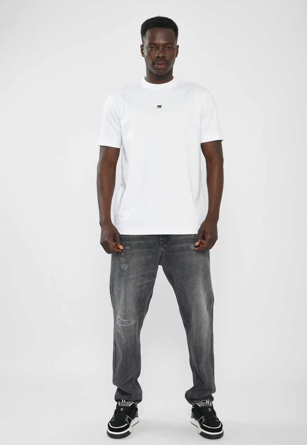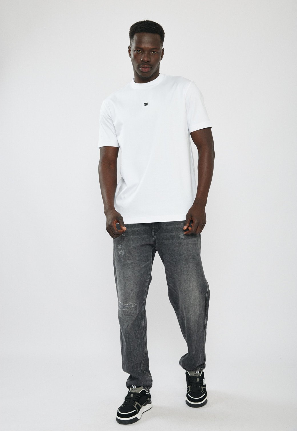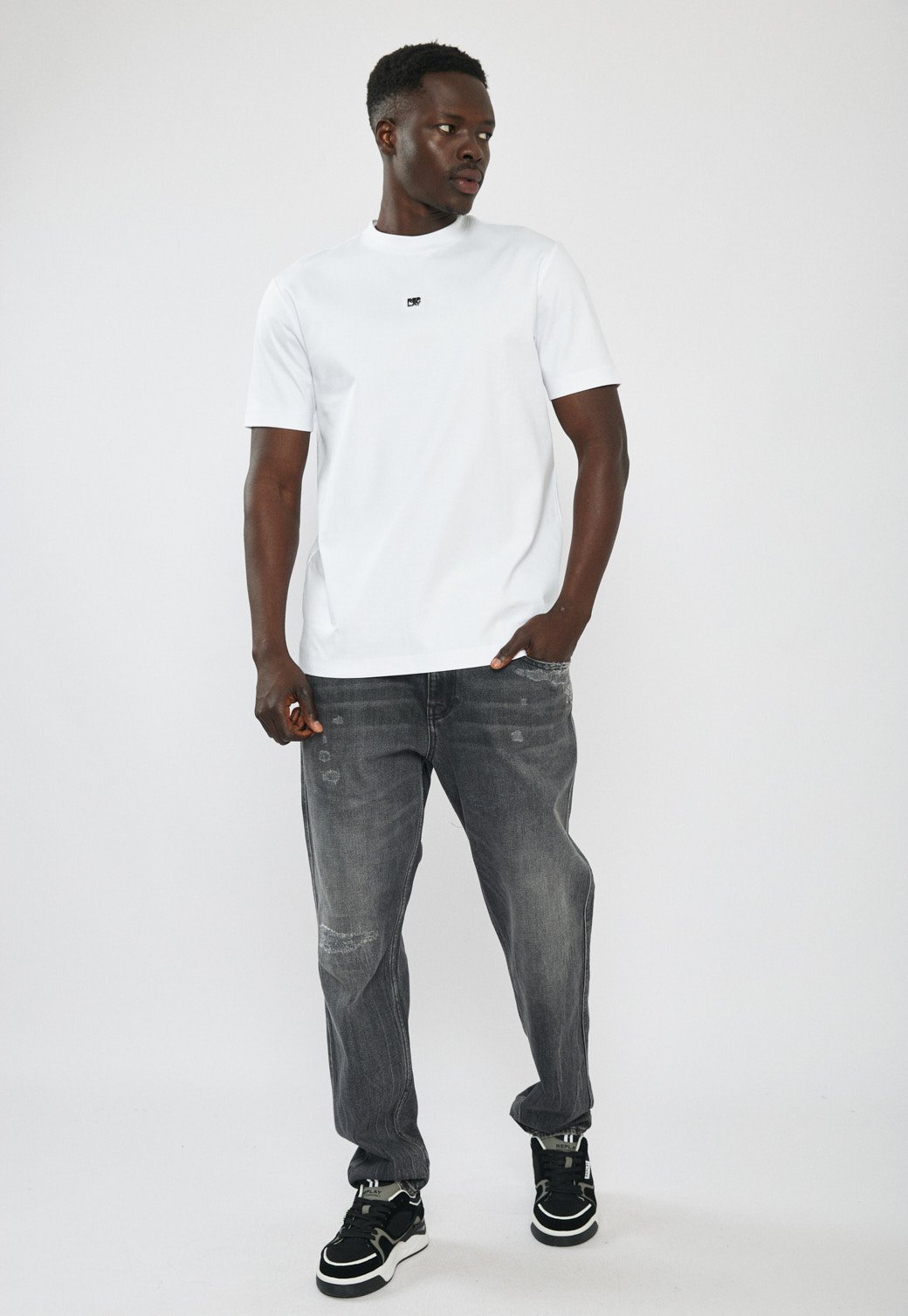 טי-שירט לגברים בגזרה קלאסית ונינוחה בצבע לבן, עשויה בד כותנה נעים למגע ונוח ללבישה יומיומית. כוללת לוגו קטן בחזית למראה נקי ומדויק. מתאימה לשילוב עם ג׳ינס, מכנס קצר או מכנס בד ליצירת לוק יומיומי קז׳ואלי ומסודר.