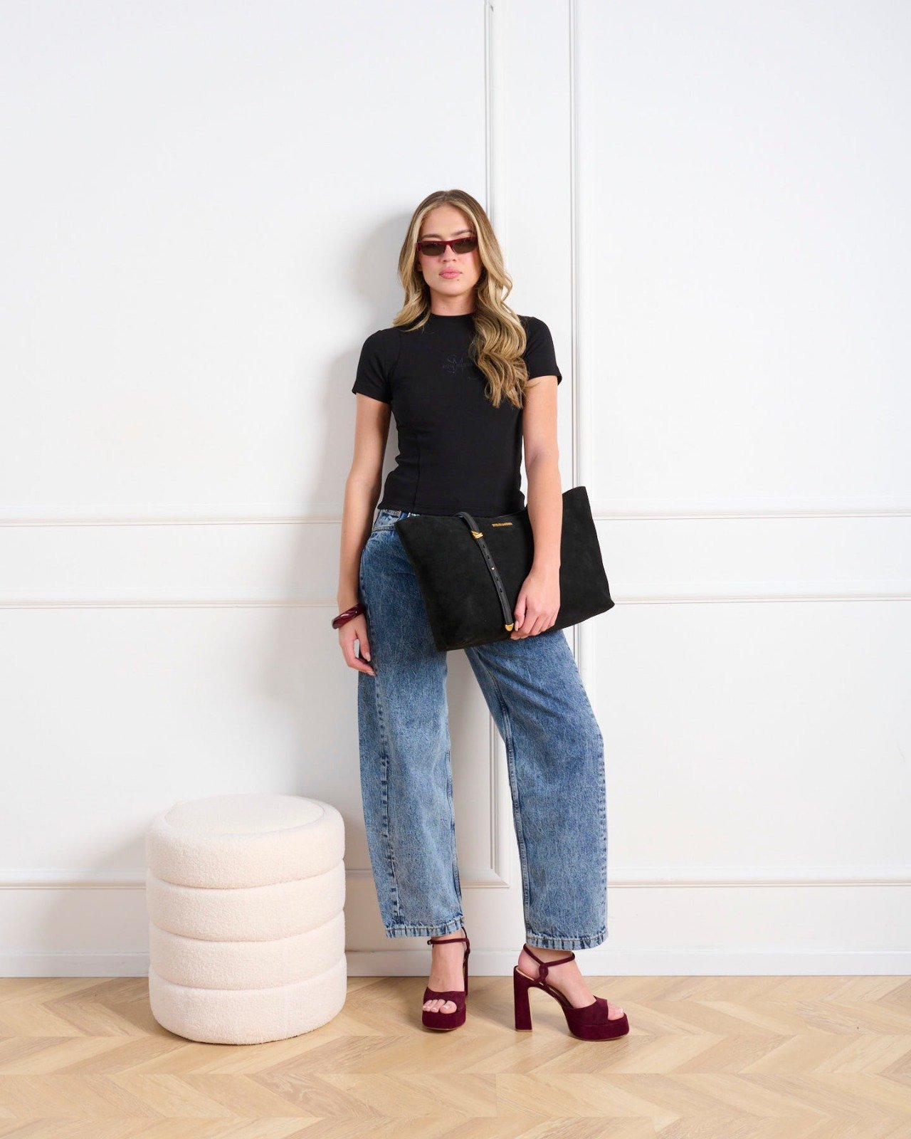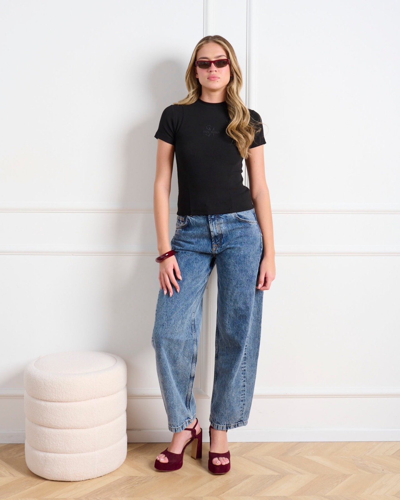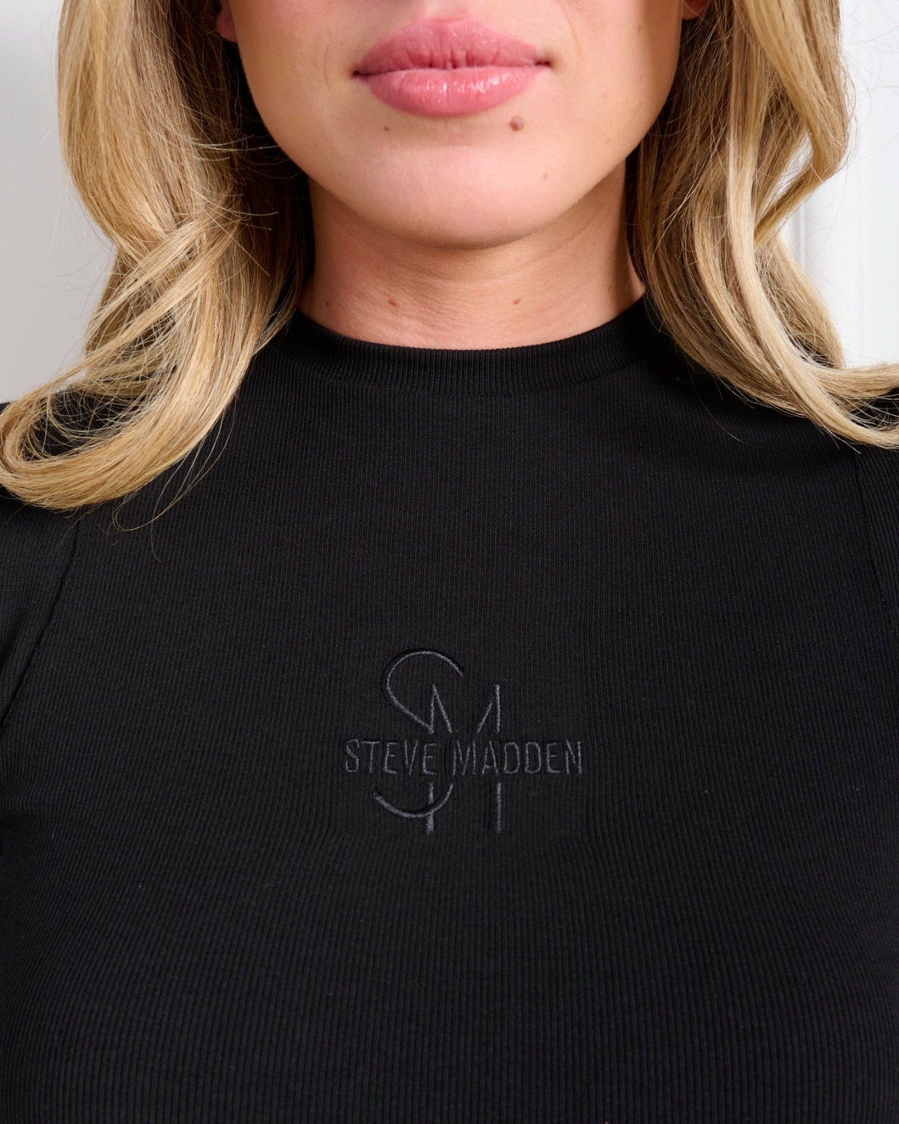 חולצת טי לנשים בגוון שחור עם מפתח עגול מבית סטיב מאדן