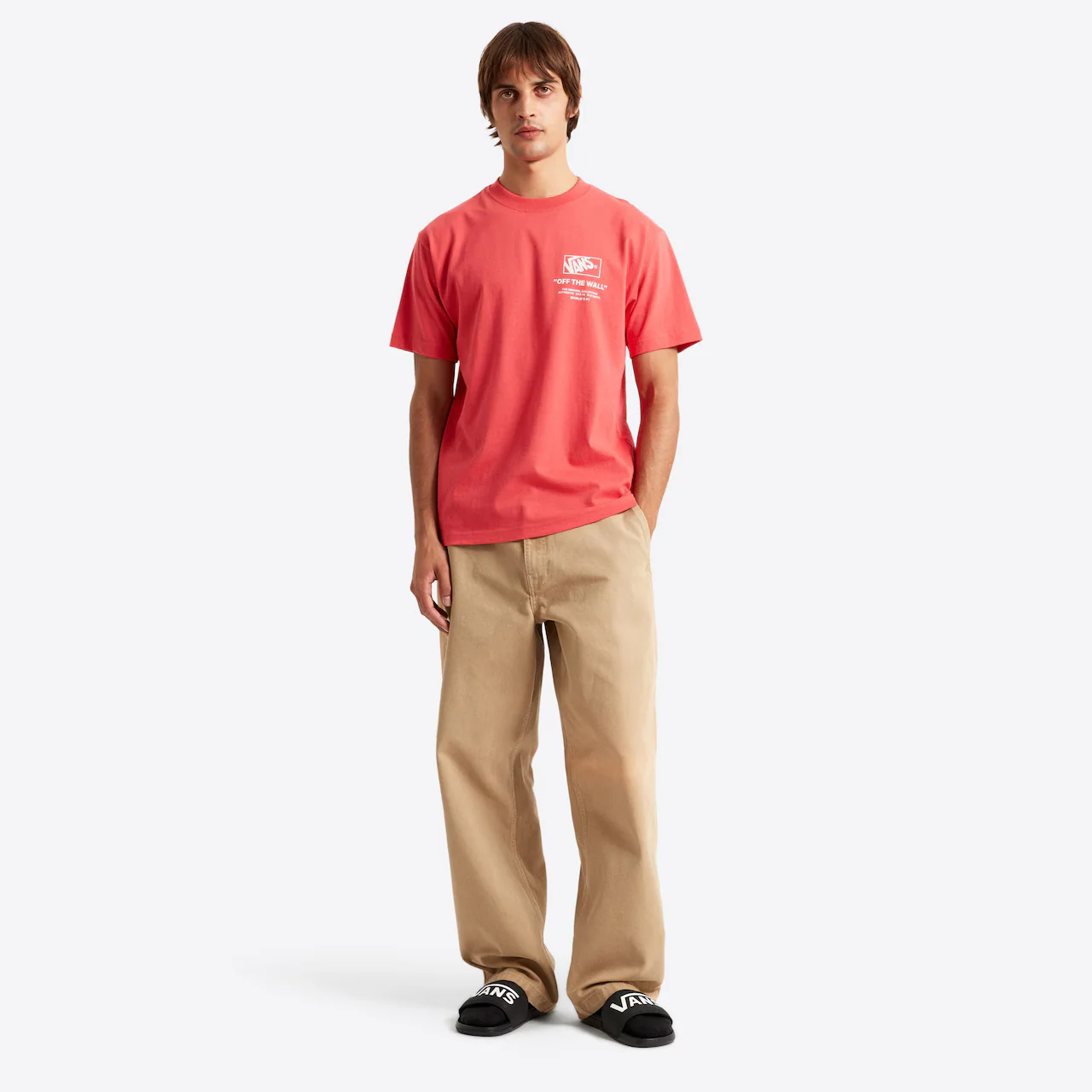 חולצת טי קצרה לגברים מבית Vans בעיצוב קלאסי עם צווארון עגול והדפס לוגו גדול של המותג. עשויה מבד כותנה נעים ונוח, מתאימה ללוק יומיומי ומשתלבת בקלות עם ג'ינס או שורט.