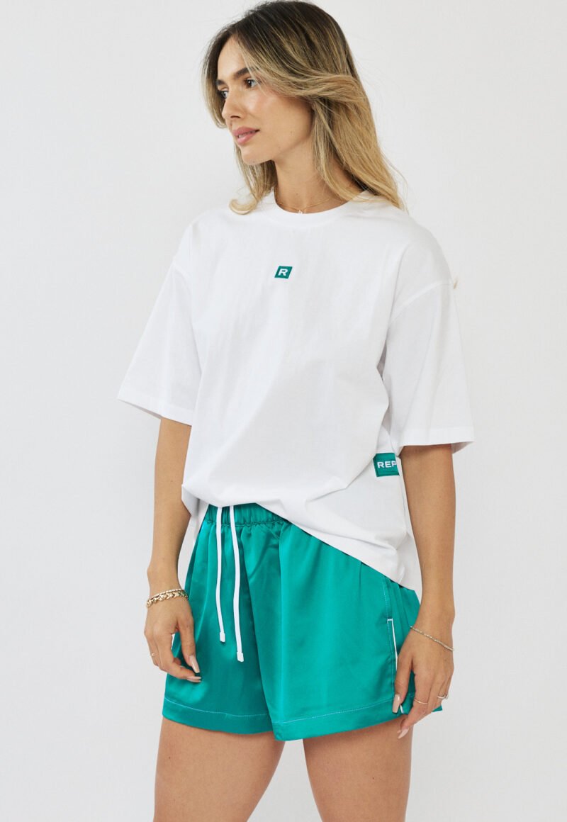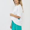טי-שירט אוברסייז לנשים בצבע לבן בעיצוב מודרני ובולט.