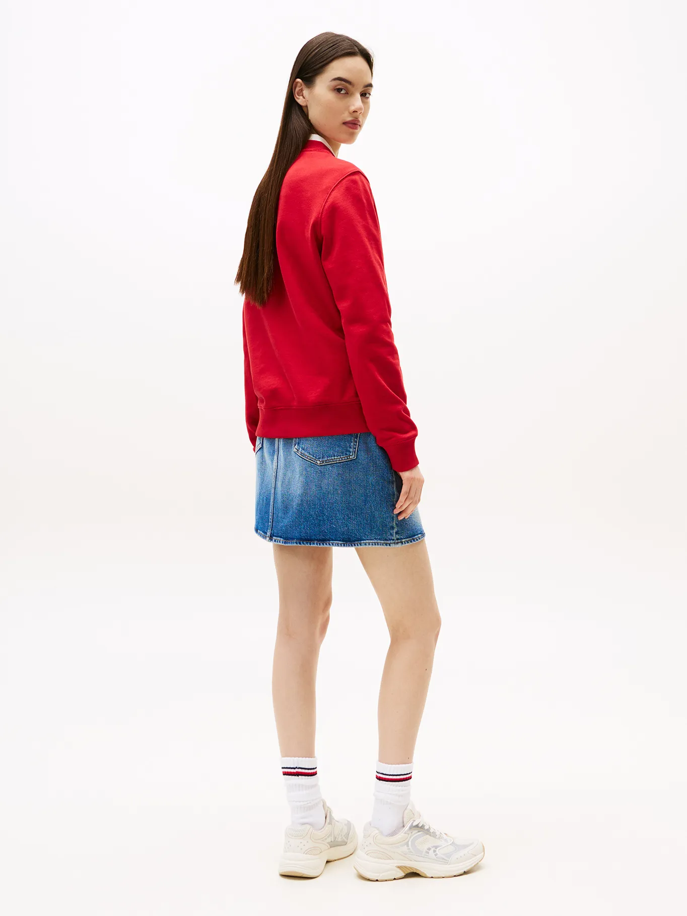 סווטשירט Tommy Jeans בעיצוב קלאסי עם הדפס לוגו גדול בחזית בסגנון וינטג’ למראה בולט וסטיילי.