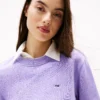 סווטשירט נשים מבית המותג Tommy Jeans בגזרת Regular Fit עם צווארון עגול ועיצוב נקי. עשוי בד כותנה רך עם פנים פליז מחמם, כולל לוגו דגל רקום על החזה – מושלם ללוק יומיומי נוח ומלא סטייל.
