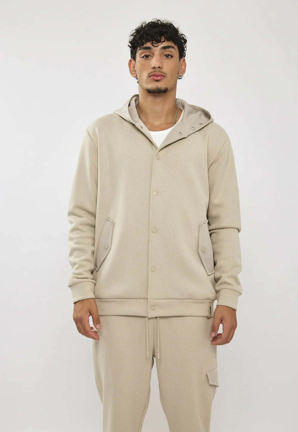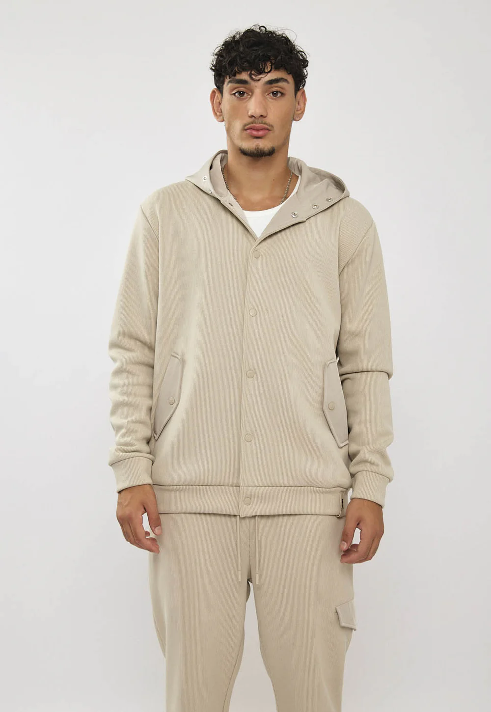 קפוצ'ון טרנינג לגברים מבד אינטרלוק נעים ורך (כותנה עם מעט אלסטיין) בגזרה רגילה. סגירה קדמית נוחה, שני כיסים צדיים עם תיקתקים, וקפוצ׳ון לשימוש יום-יומי. גימורי ריב בשרוולים ובמכפלת מעניקים התאמה נקייה ומדויקת. מושלם לשילוב עם ג׳ינס או מכנסי טרנינג למראה קז׳ואלי ומסודר.
