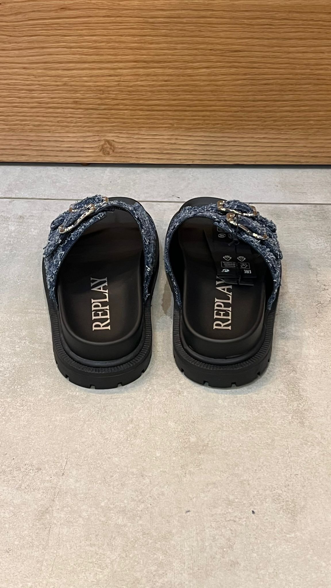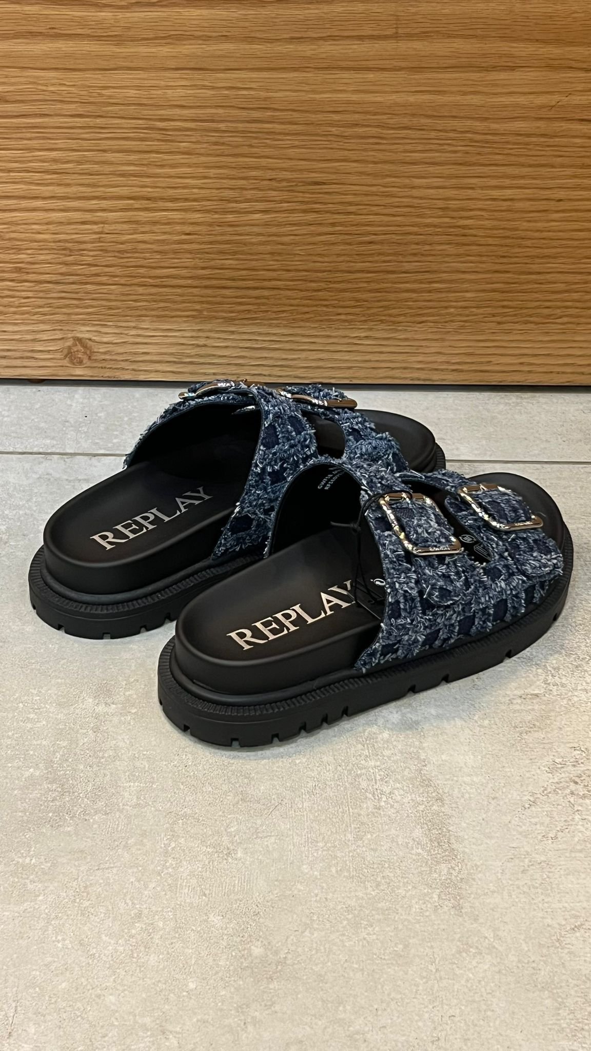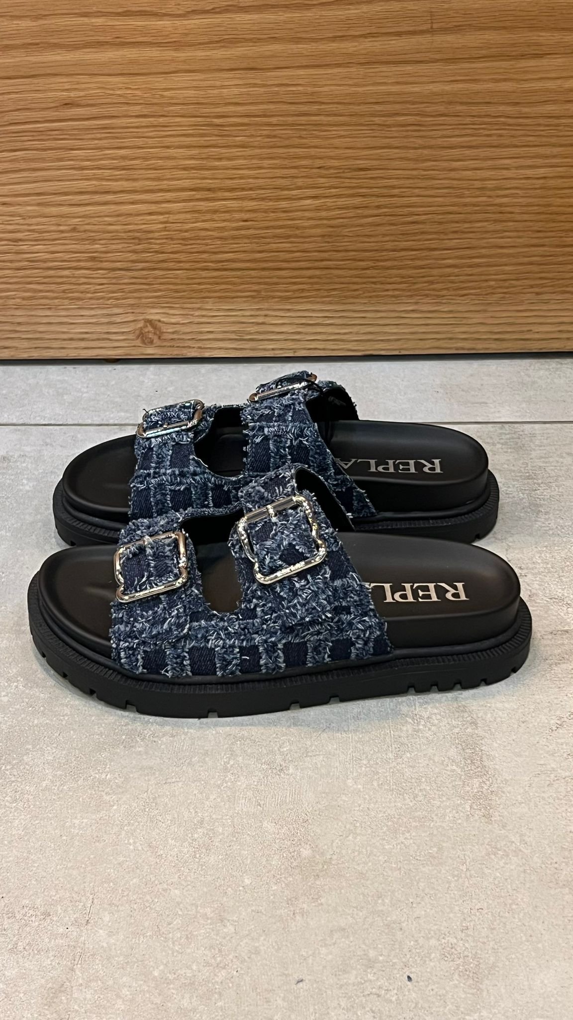 כפכפים אופנתיים לנשים בעיצוב מיוחד של Replay, עשויים בד דנים כהה ובהיר. רצועות כפולות עם אבזמים מתכווננים לנוחות מקסימלית, סוליה עבה ועמידה המעניקה תמיכה ויציבות. הבחירה המושלמת לכל לוק קייצי בסטייל!