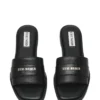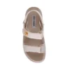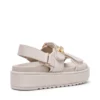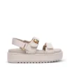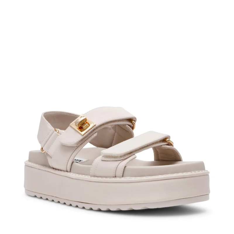 סנדלי פלטפורמה רצועות לנשים בגוון אבן בטקסטורת ניילון עם אבזם מוזהב מבית סטיב מאדן.
