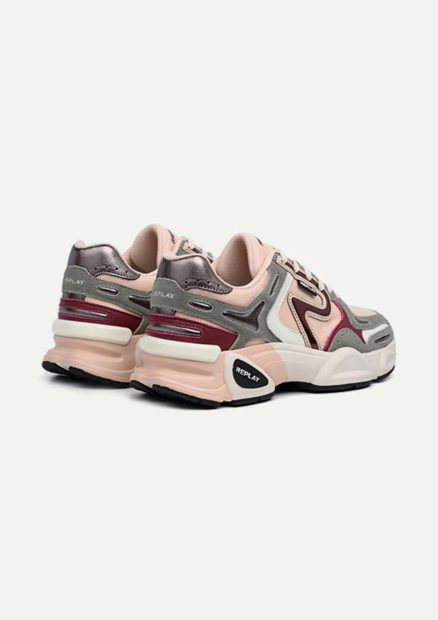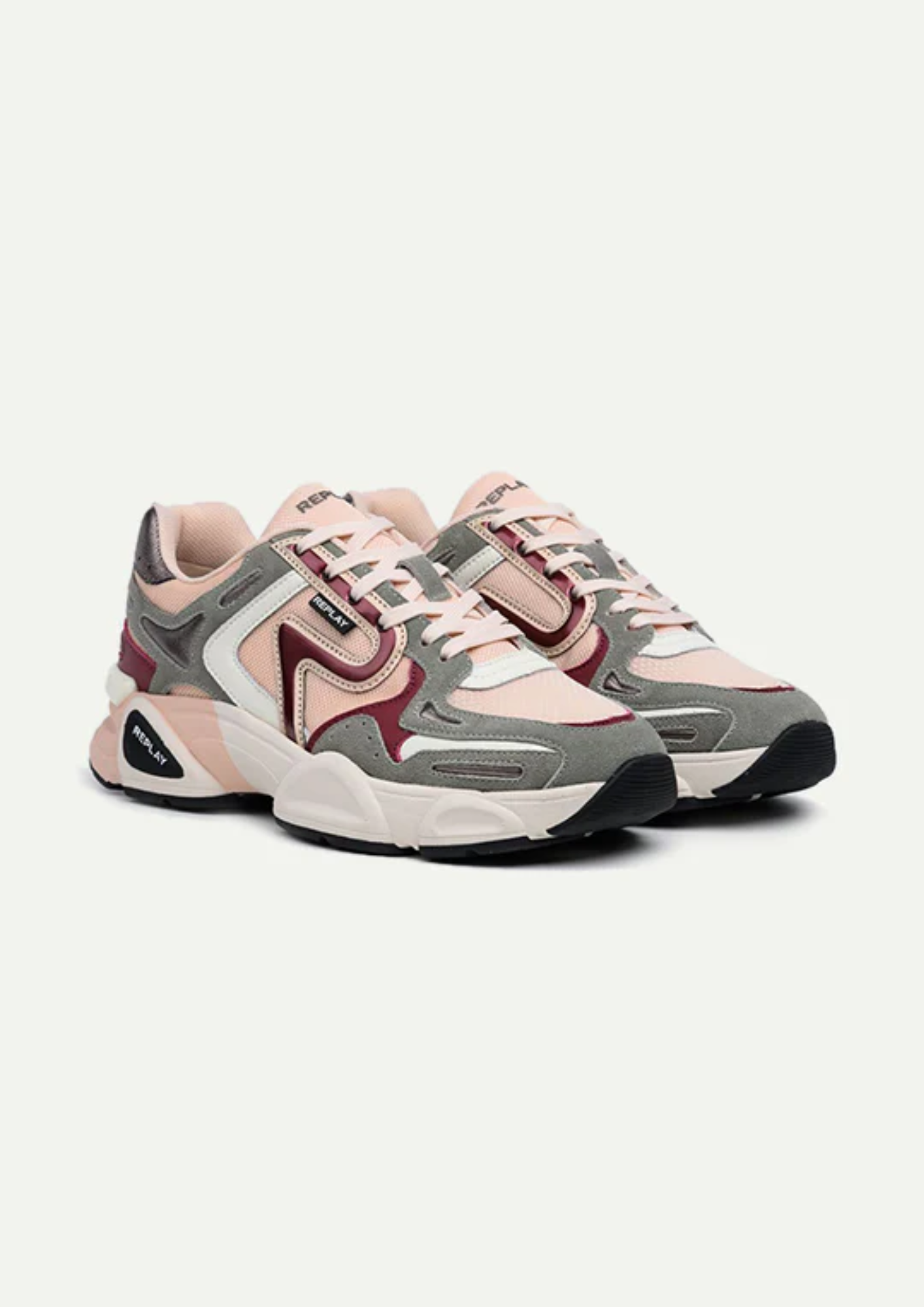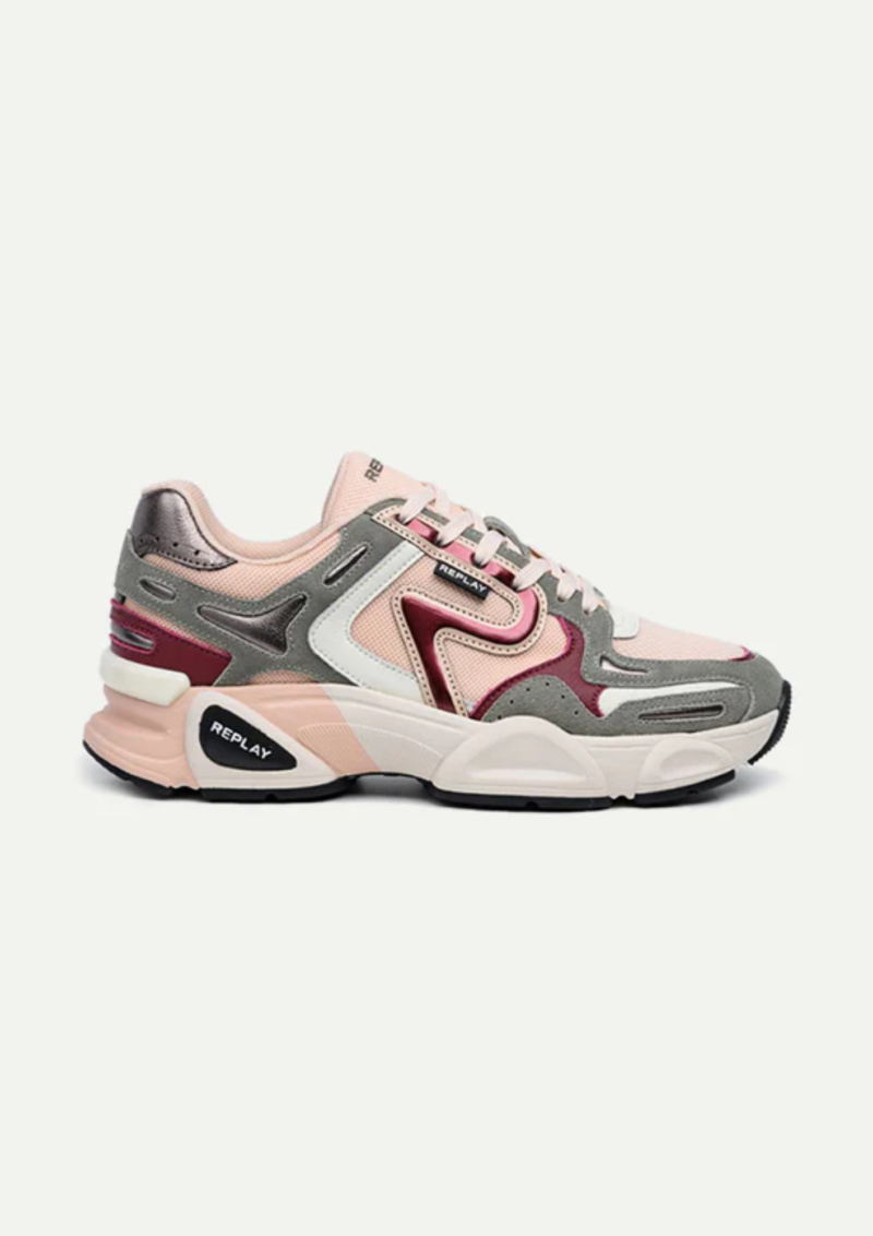 סניקרס אופנתיות לנשים מדגם DESTINY בעיצוב מודרני בגווני ורוד אפור ובז', בשילוב חומרים איכותיים המעניקים עמידות ונוחות מרבית. הסוליה המעוצבת והבולמת זעזועים מתאימה ליום עמוס או לטיול עירוני, והלוגו של REPLAY מוסיף טאצ' יוקרתי ללוק הספורטיבי.