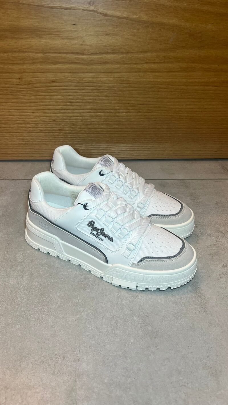 נעלי סניקרס לגברים מבית Pepe Jeans בעיצוב מודרני ונקי בגוון לבן. עשויות מבד סינטטי איכותי עם שילוב טקסטורות עדין ונגיעות אפורות שמוסיפות עניין וסטייל. כוללות סוליה עבה ונוחה לבלימת זעזועים, שרוכים להתאמה מושלמת ולוגו מודגש בצד. מתאימות לשימוש יומיומי עם מראה אופנתי ועדכני.